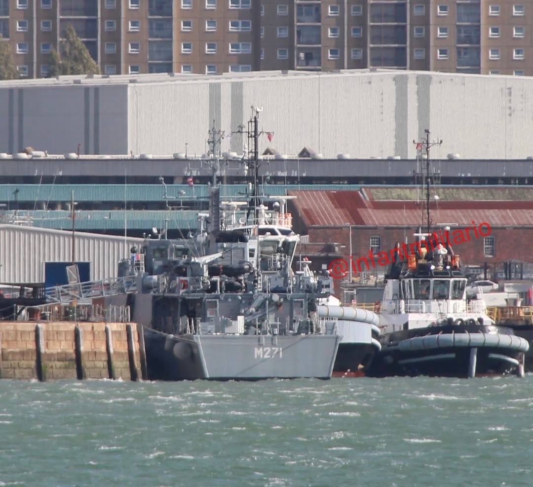 Два украинских минных тральщика, подаренных Бельгией и Голландией, были замечены вчера в Портсмуте. Внутри — бывший минный тральщик Narcis, ныне известный как «Мариуполь». Сбоку — бывший минный тральщик Vlaardingen, ныне «Мелитополь».