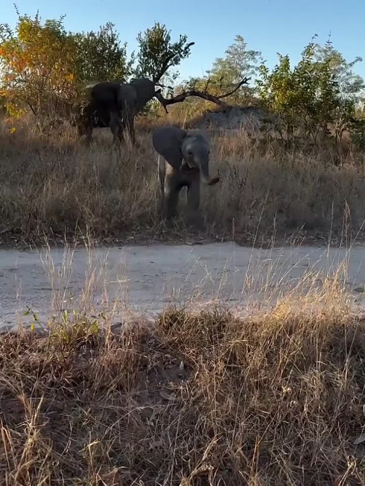 Маленький слоненок весело подбежал к туристам и даже замахал им хоботом