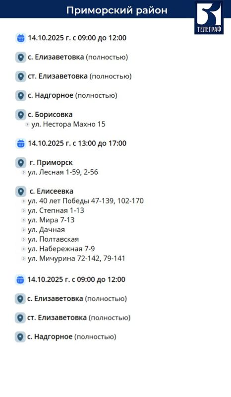 График планового отключения электроэнергии на 14 октября.