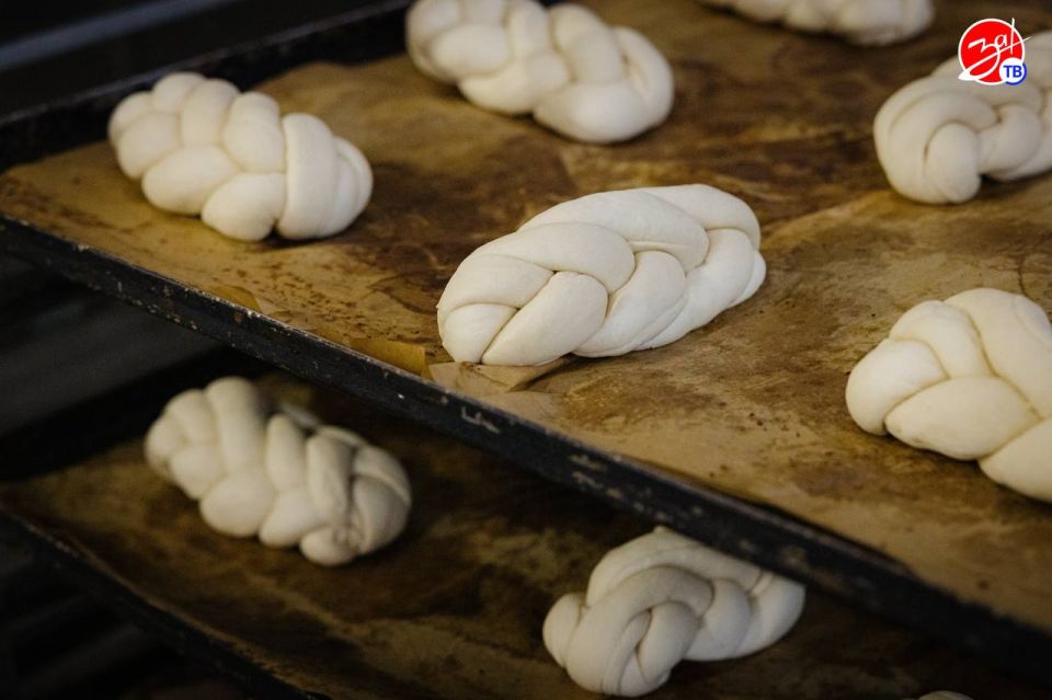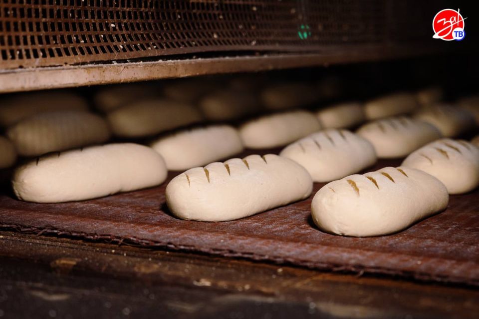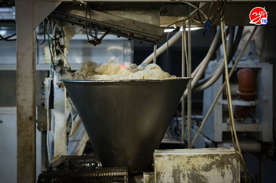 Вода, мука, молочнокислая закваска смешиваются в чане, а дрожжи, соль, сахар и растительное масло добавляются вручную в зависимости от рецептуры изделия. Затем на помощь приходит тестомес — замешанное тесто делится на части. После тесто проходит итоговую расстойку и отправляется в духовую печь.