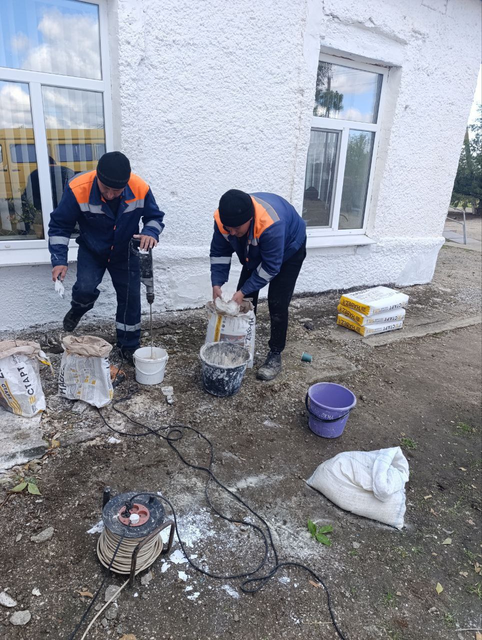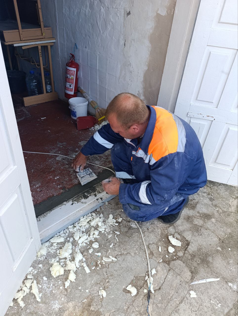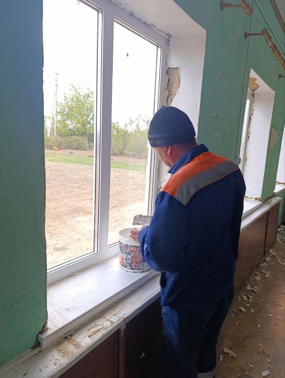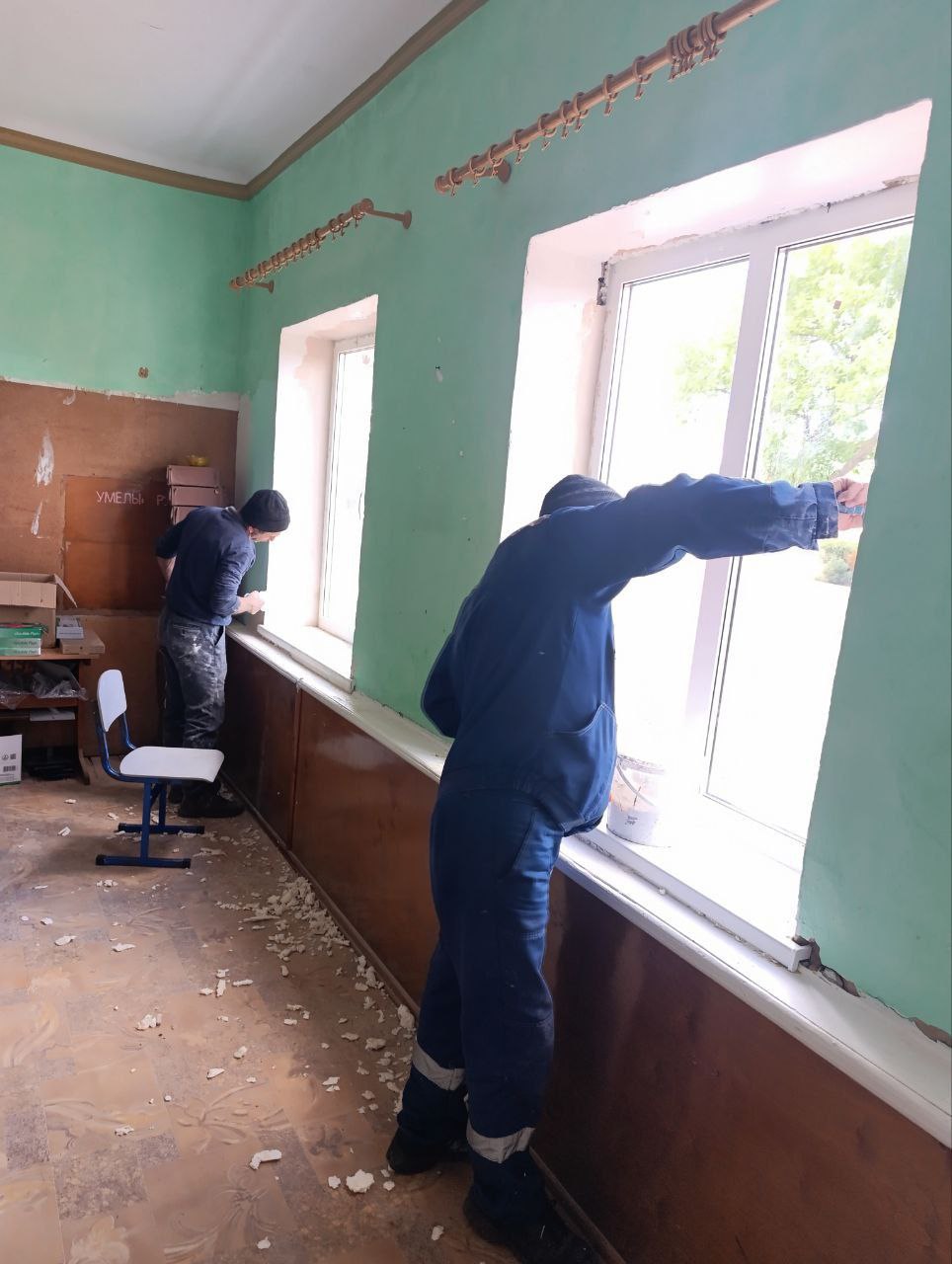 Сотрудники МБУ «Жилсервис» оказали помощь ГБУ ОО ЗО «Поляновская средняя общеобразовательная школа №61» Мелитопольского муниципального округа — они выполнили откосы на новых окнах.