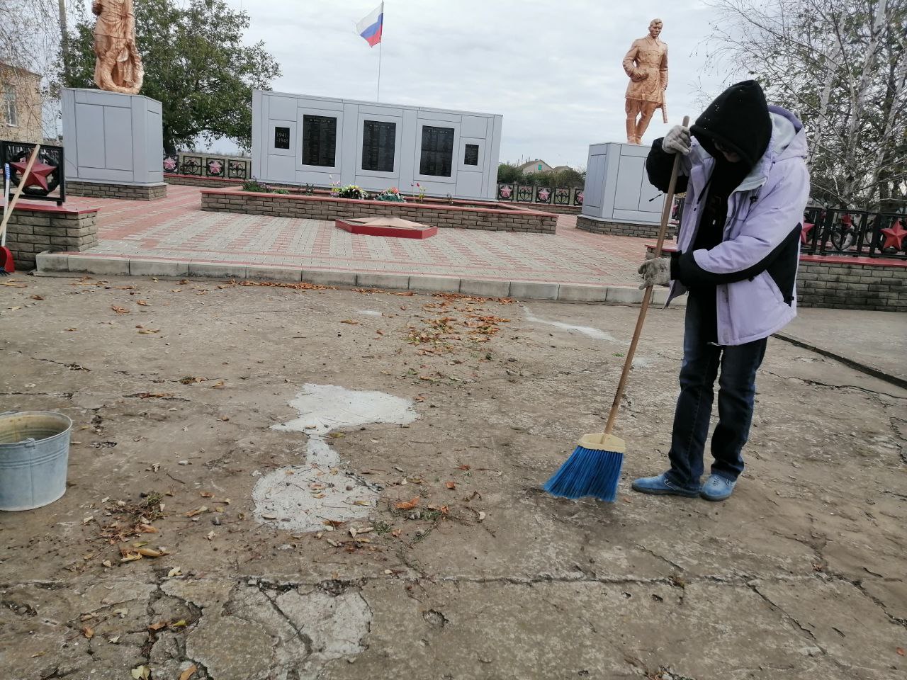 В преддверии 82-й годовщины освобождения села Долинское от немецко-фашистских захватчиков, сотрудники клуба досуга совместно с техническими работниками местной школы провели субботник на территории Братской могилы.