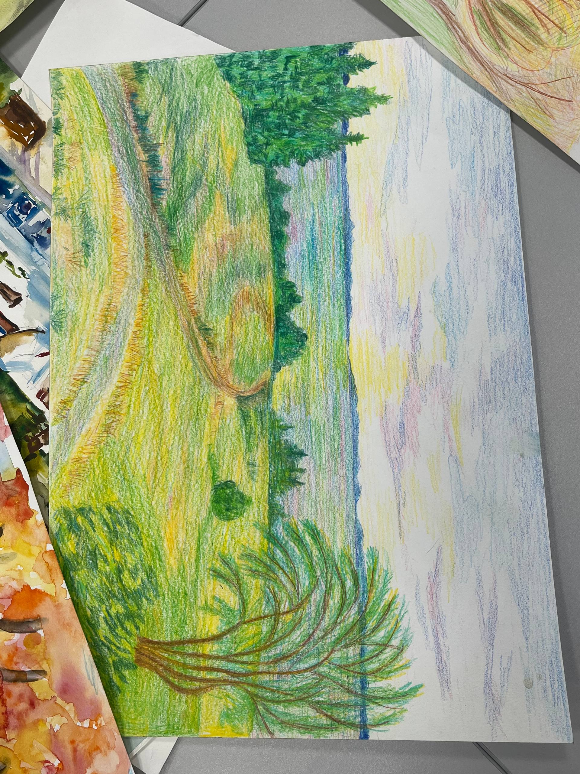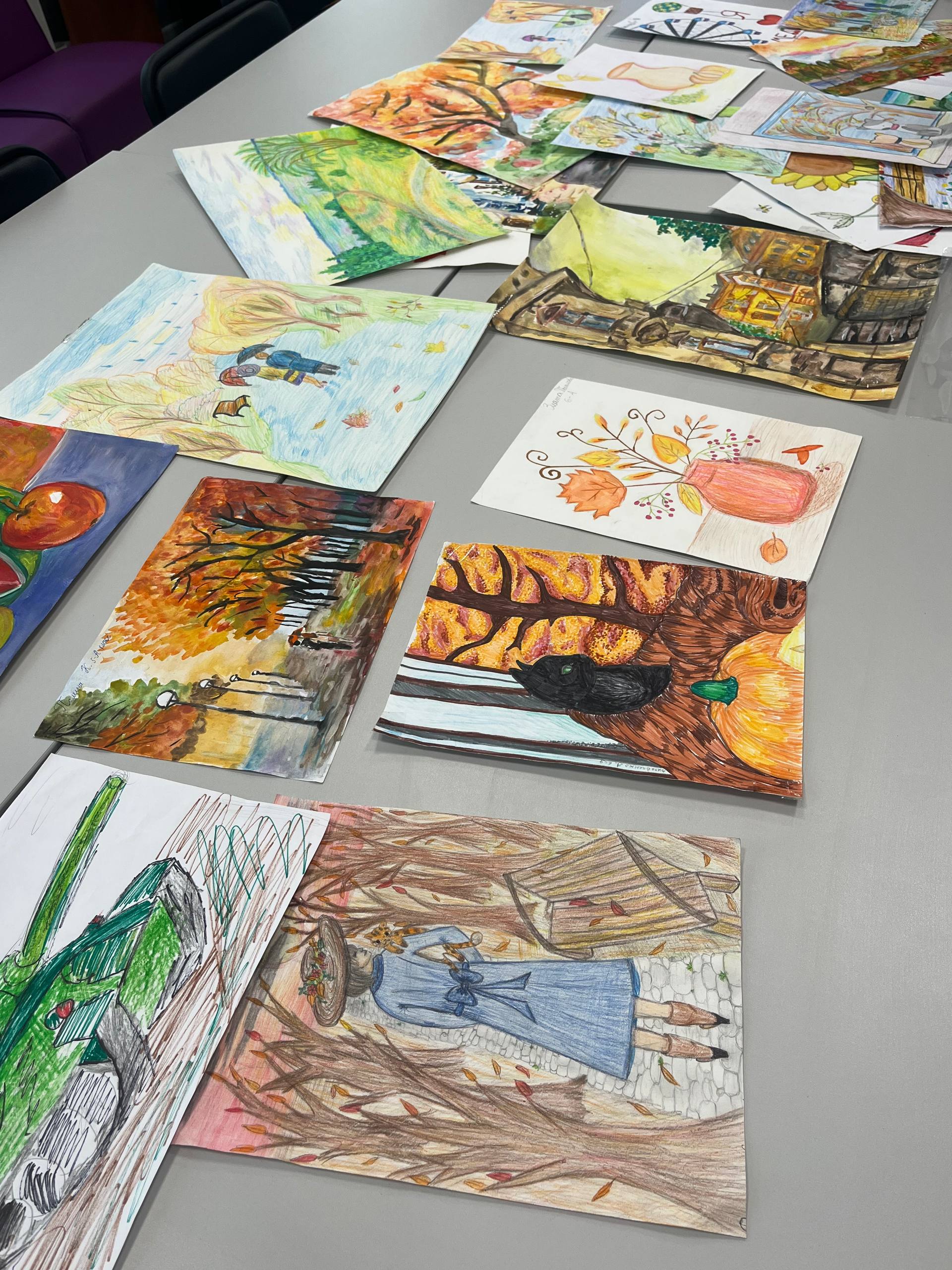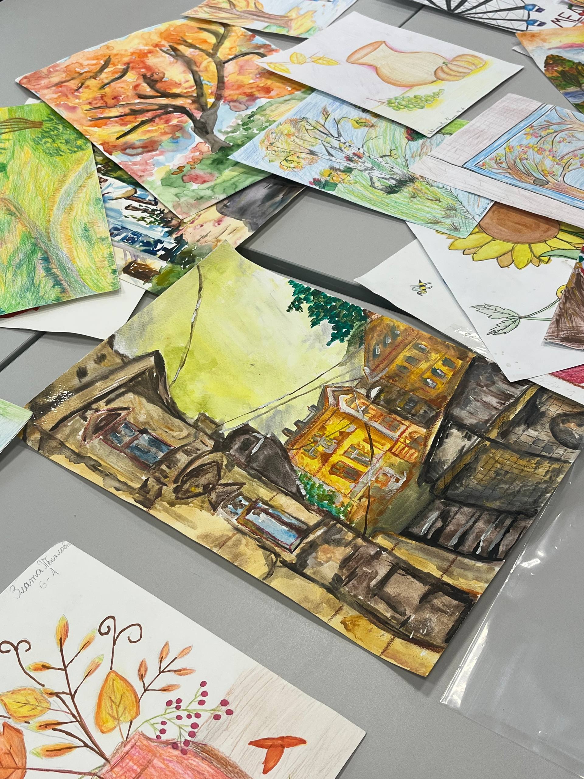 В каждом осеннем дне — особая гармония: золотые листья тихо кружатся в воздухе, небо становится глубже и чище, а природа будто замедляет шаг, готовясь к отдыху. Эта пора учит видеть красоту в простом и ученики замечая каждую деталь, изобразили свое виденье на листах бумаги с помощью акварели, гуаши, карандашей