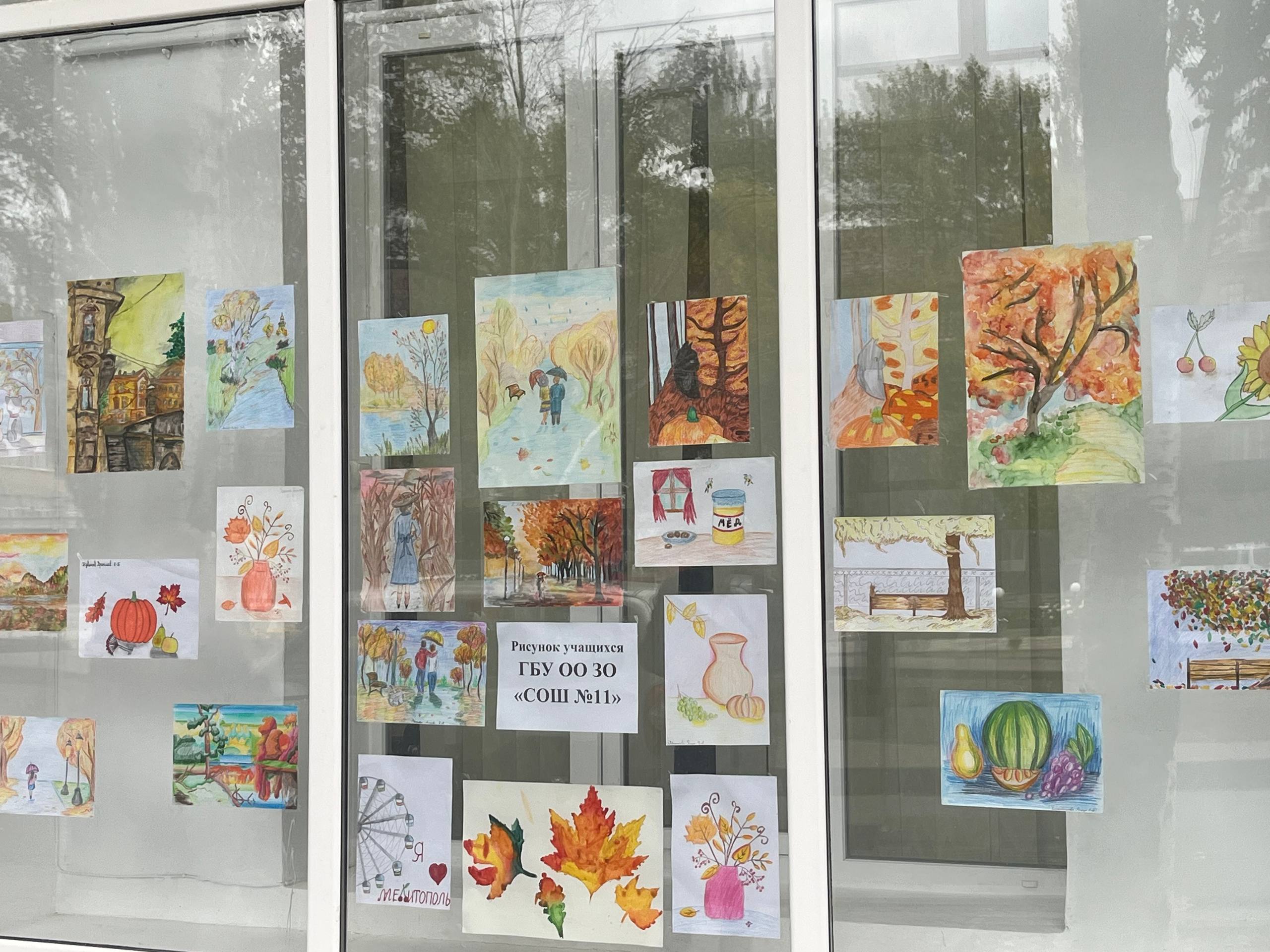 Сегодня окна Центральной библиотеки имени Лермонтова украшены рисунками учеников ГБУ ОО ЗО «СОШ № 11».