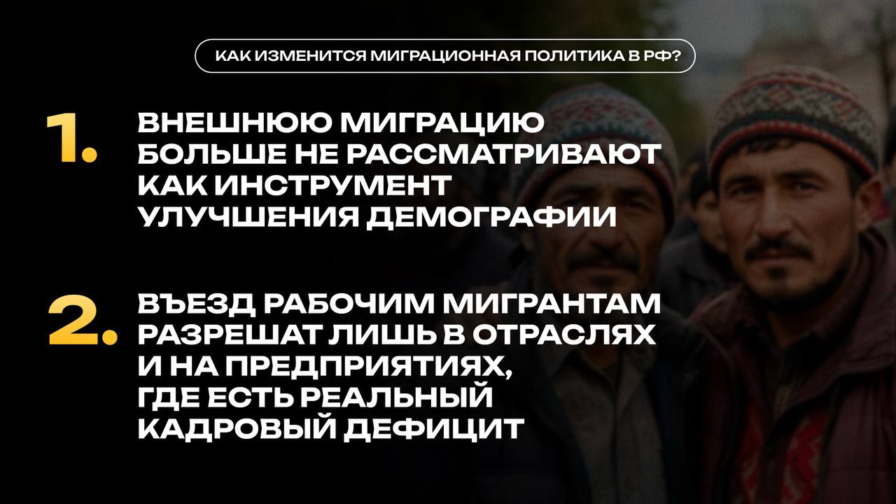 2 Вводится целевой организованный набор иностранной рабочей силы только там, где реально не хватает кадров. России нужны квалифицированные специалисты, а не «свободные бойцы без правил».