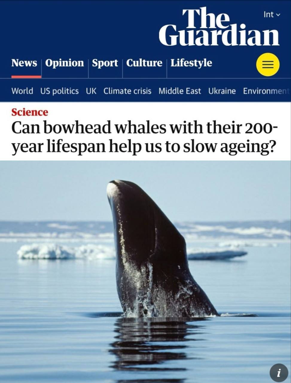 Учёные обнаружили уникальный белок CIRBP, который ускоряет восстановление ДНК и способен увеличить продолжительность жизни. У гренландского кита его содержание в 100 раз превышает человеческий уровень, благодаря чему кит живет более 200 лет и практически не подвержен раку. Экспериментальное введение белка в клетки человека и плодовых мушек подтвердило его эффективность.