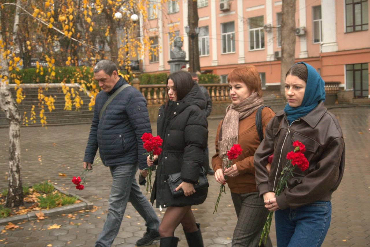19 ноября, в День преподавателя высшей школы, представители управления культуры, спорта и молодежной политики, активисты регионального отделения РВИО и преподаватели Мелитопольского государственного университета возложили цветы к памятнику воинам-педагогам в Мелитополе.