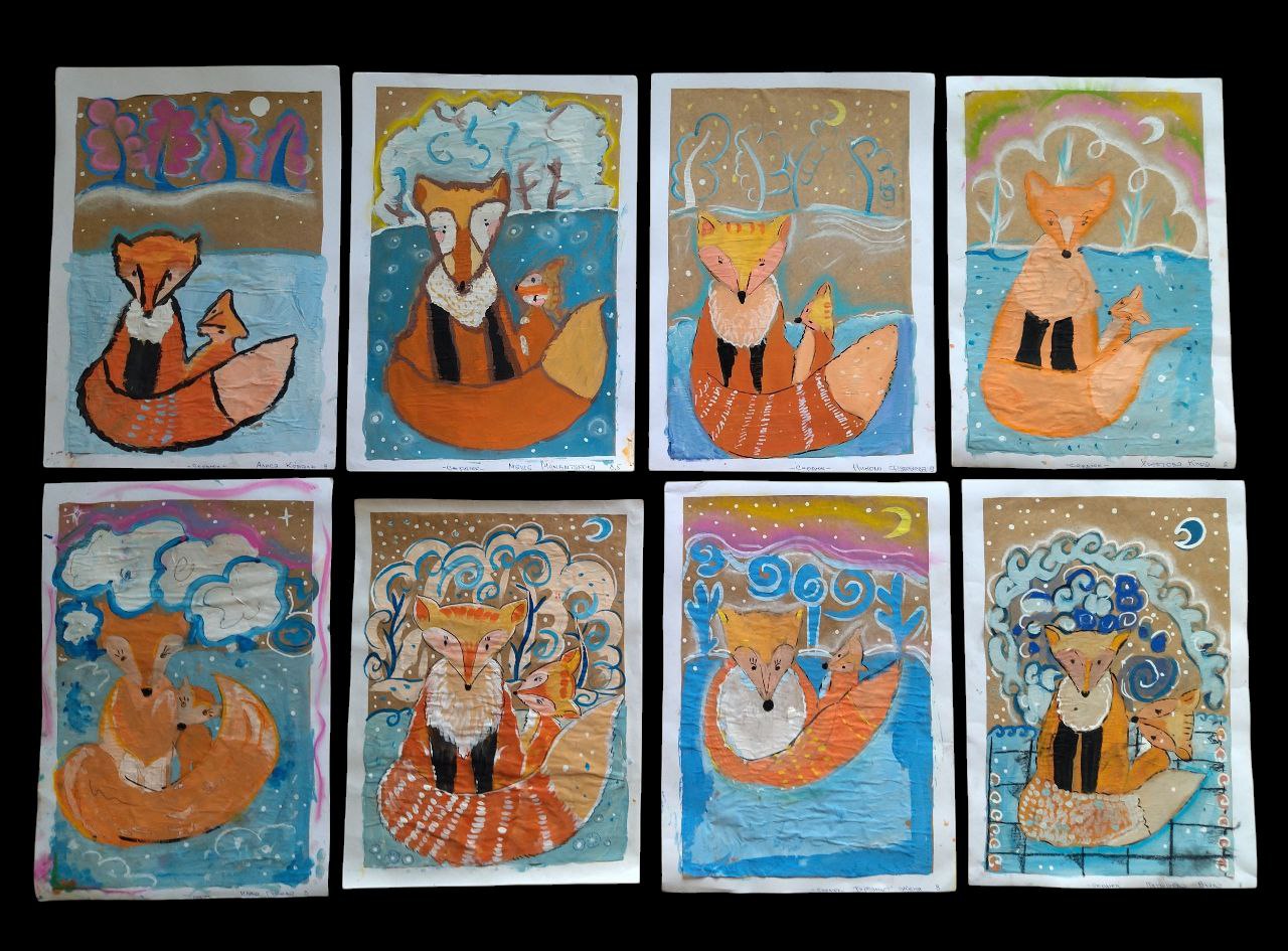 Вдохновившись народными сказками, дети изображали самых хитрых и обаятельных персонажей — сказочную маму-лису и её лисёнка!