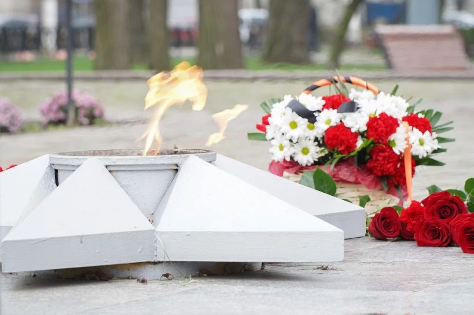 В полной тишине, нарушаемой лишь трепетом пламени Вечного огня, участники церемонии возложили к подножию памятника алые гвоздики. Каждый цветок — это символ живой памяти, благодарности и скорби.