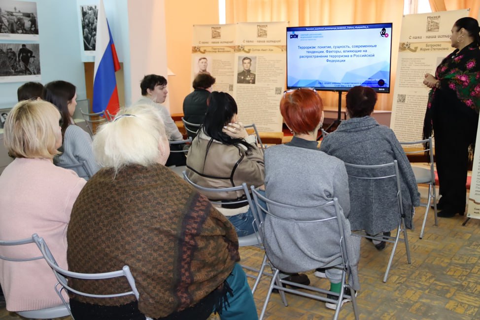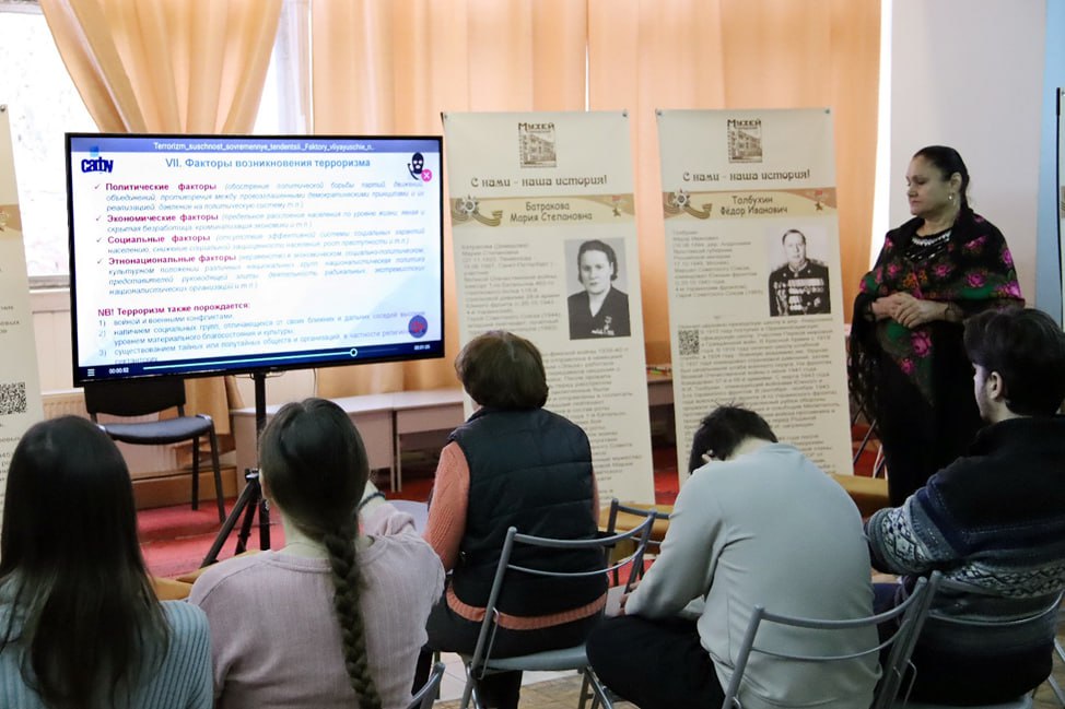 # В ходе мероприятия сотрудники музея прослушали лекцию, направленную на повышение уровня информированности и осведомлённости о природе терроризма, его формах, причинах и мотивах возникновения. Особое внимание было уделено вопросам профилактики, а также мерам противодействия терроризму и экстремизму.