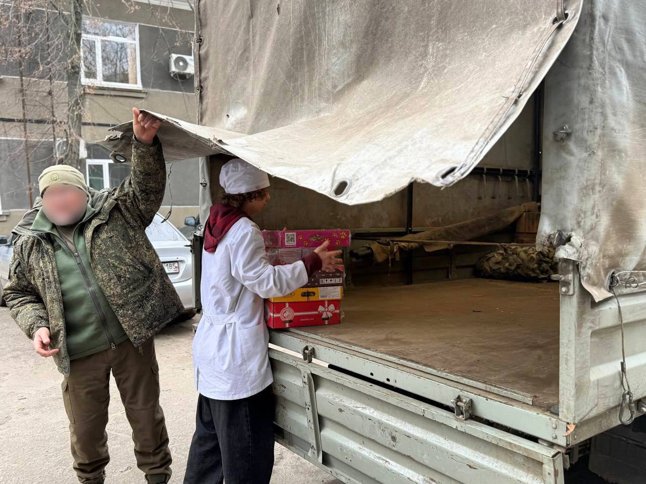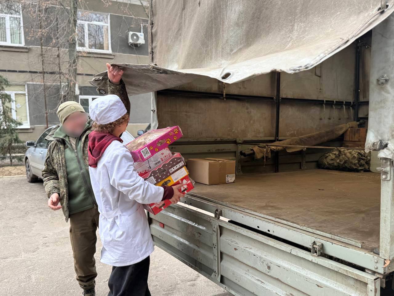 Помощь включает в себя продукты длительного хранения, консервацию, сладости, предметы личной гигиены, а также теплые вещи и термобелье.