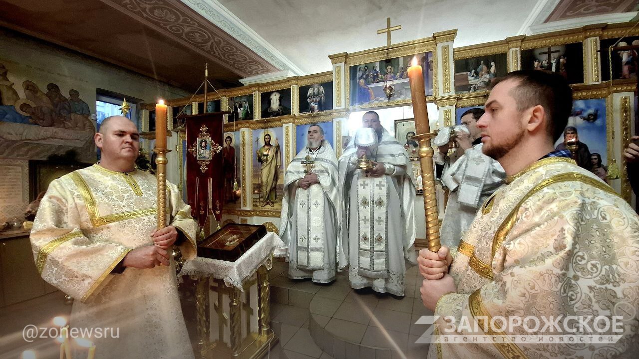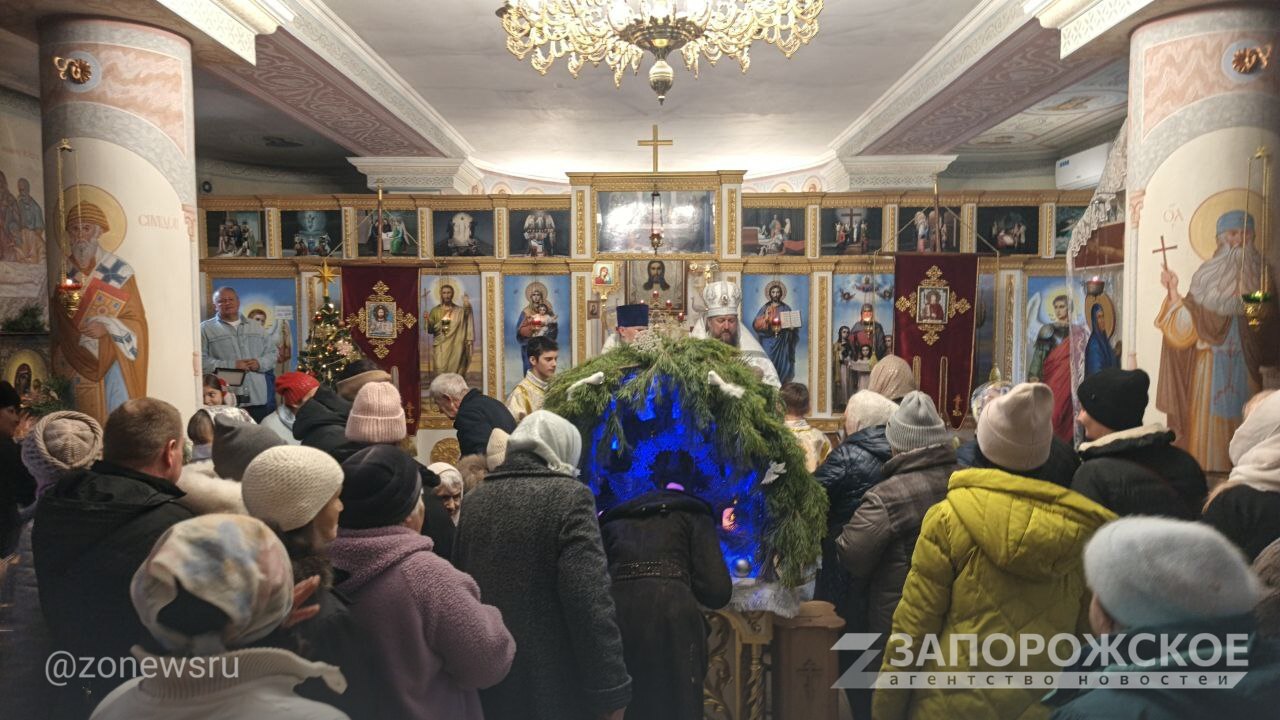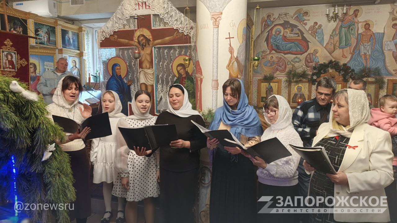 Церковный хор святого Георгия Победоносца поздравил прихожанин с Рождеством Христовым праздничными песнопениями, сообщает корреспондент Запорожского агентства новостей.
