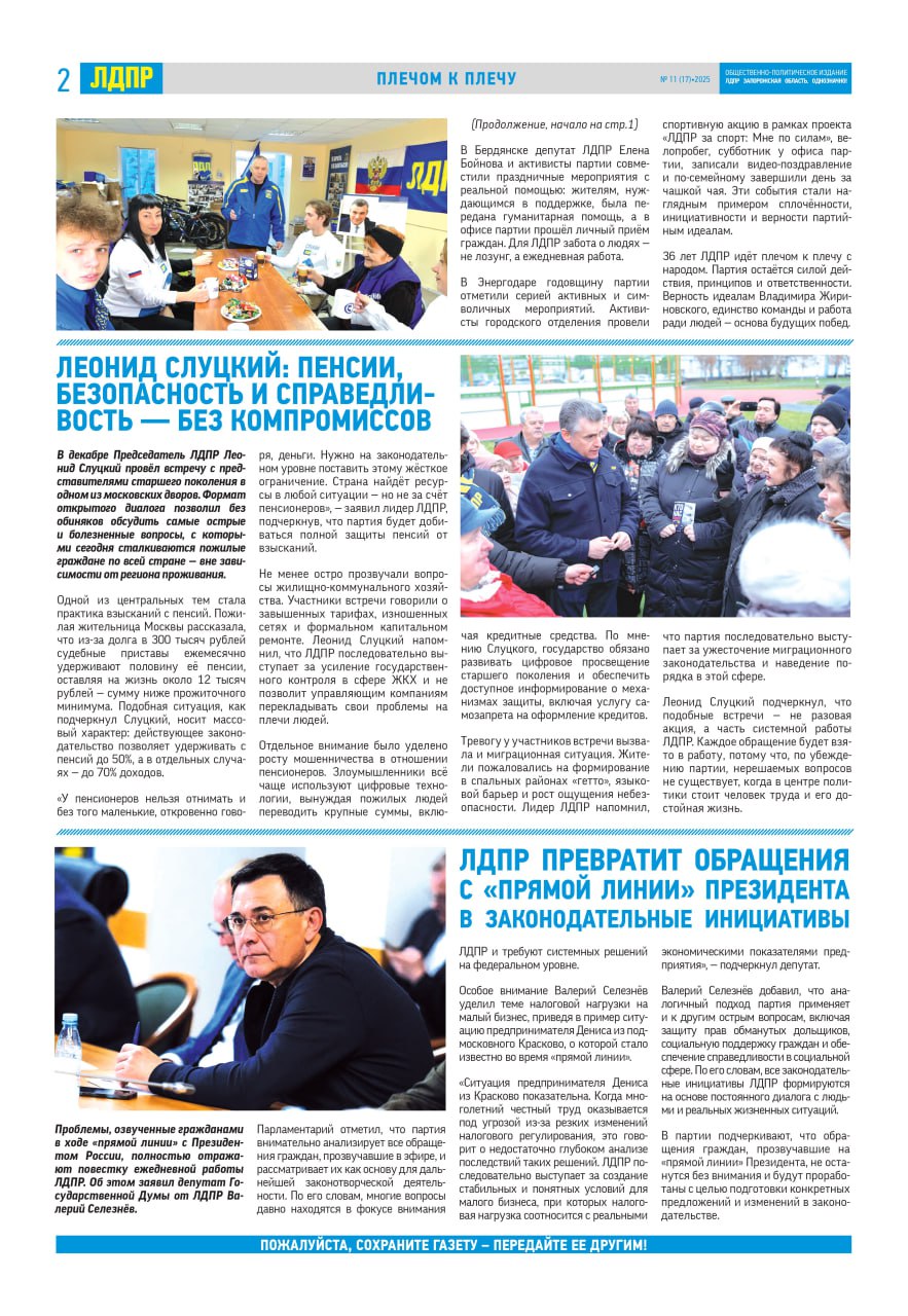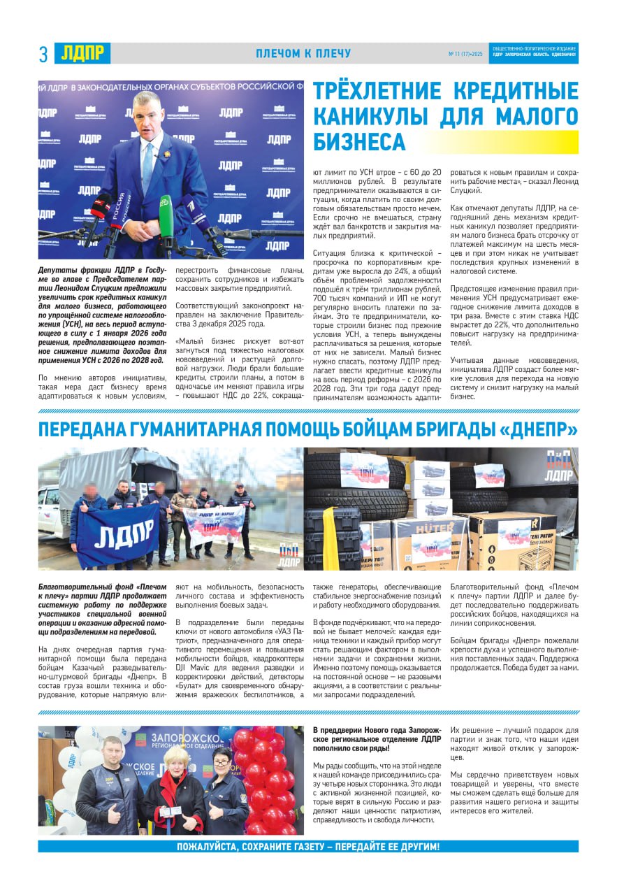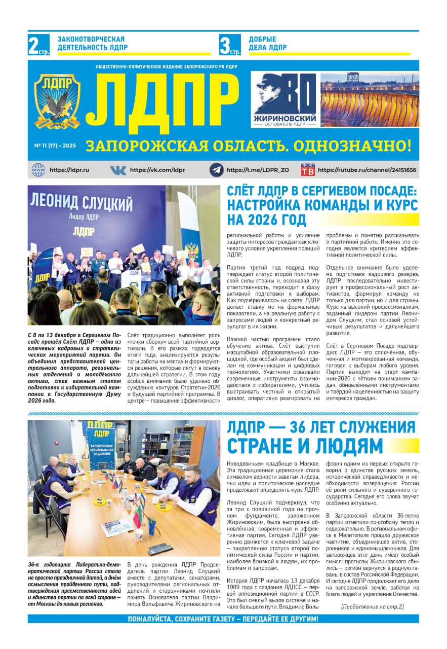 Наша газета: «ЛДПР Запорожская область. Однозначно!» (электронный вариант – декабрь № 11 (17) – 2025г.)