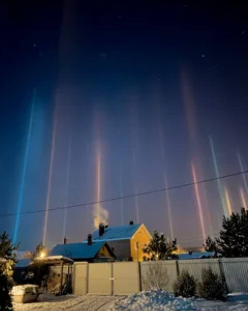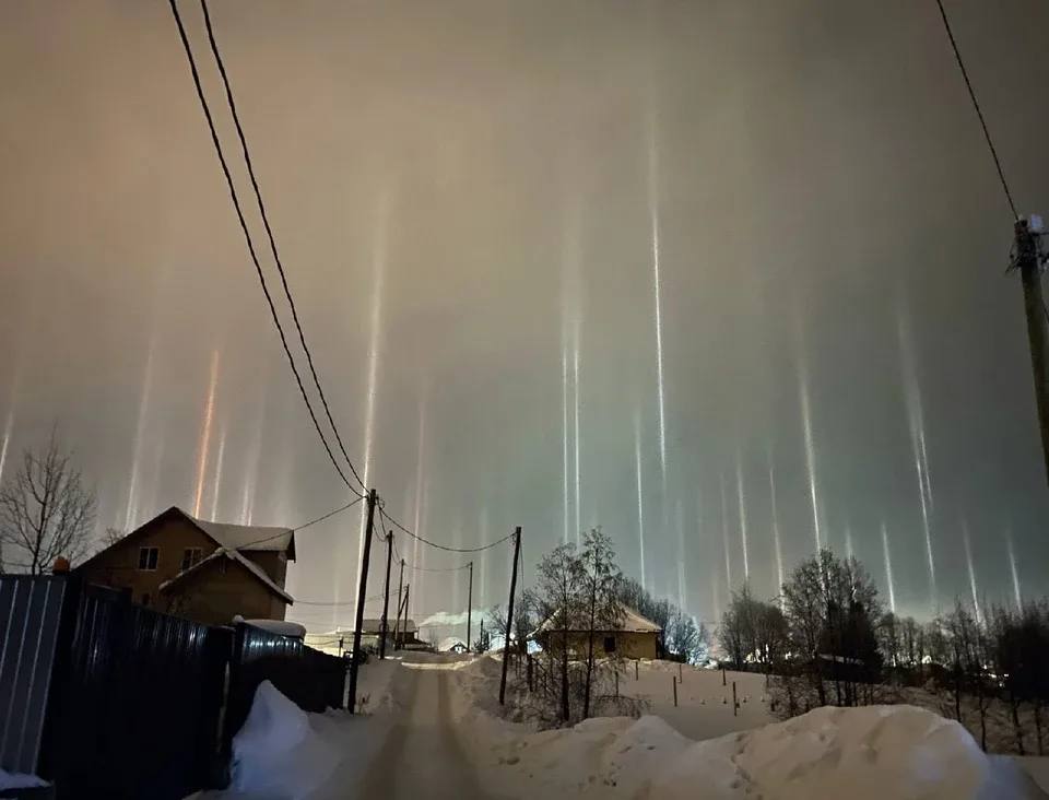Это световой столб, который образовался в результате возгорания, а морозная погода способствует образованию кристаллов.