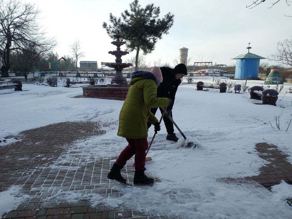 В селе Астраханка сотрудники МБУ «Жилсервис» провели работы по уборке снега на территории сквера.