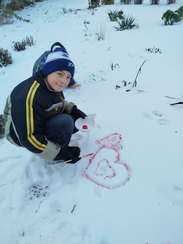 Дети с воодушевлением вышли на улицу и превратили белоснежное полотно двора в галерею зимних фантазий: рисовали ёлочки, сердечки, узоры и целые сюжеты. Каждый рисунок — особенный: весёлый, трогательный, креативный… Но главное — искренняя радость на лицах ребят!