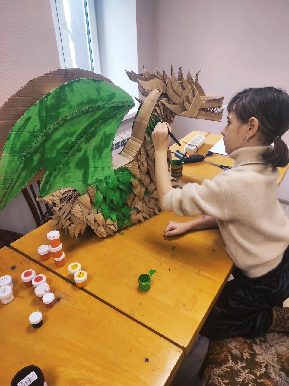 На одном из творческих занятий ребята решили создать не просто поделку, а настоящего дружелюбного дракона — «Дракошу» — своими руками из обычного картона!