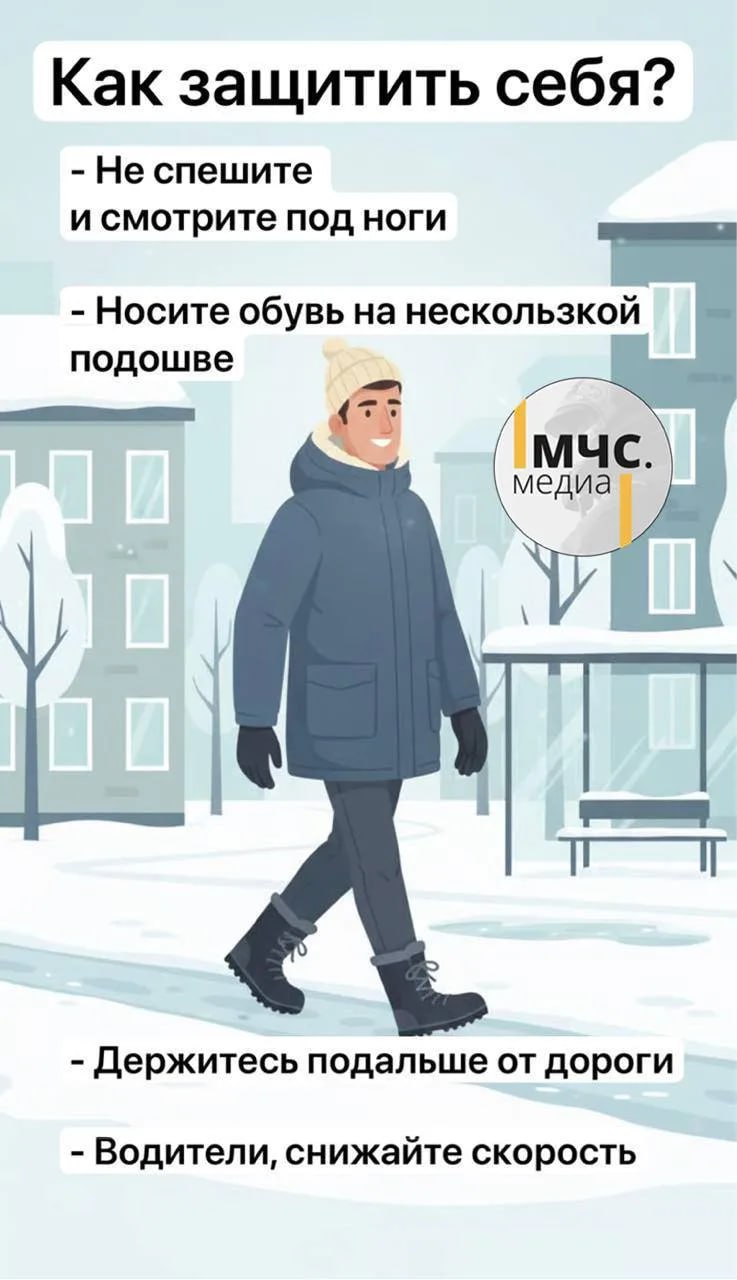 Чтобы обезопасить себя и избежать неприятных ситуаций, следуй простым правилам. В карточках МЧС Медиа самые важные рекомендации, которые помогут уверенно передвигаться по скользким дорожкам.