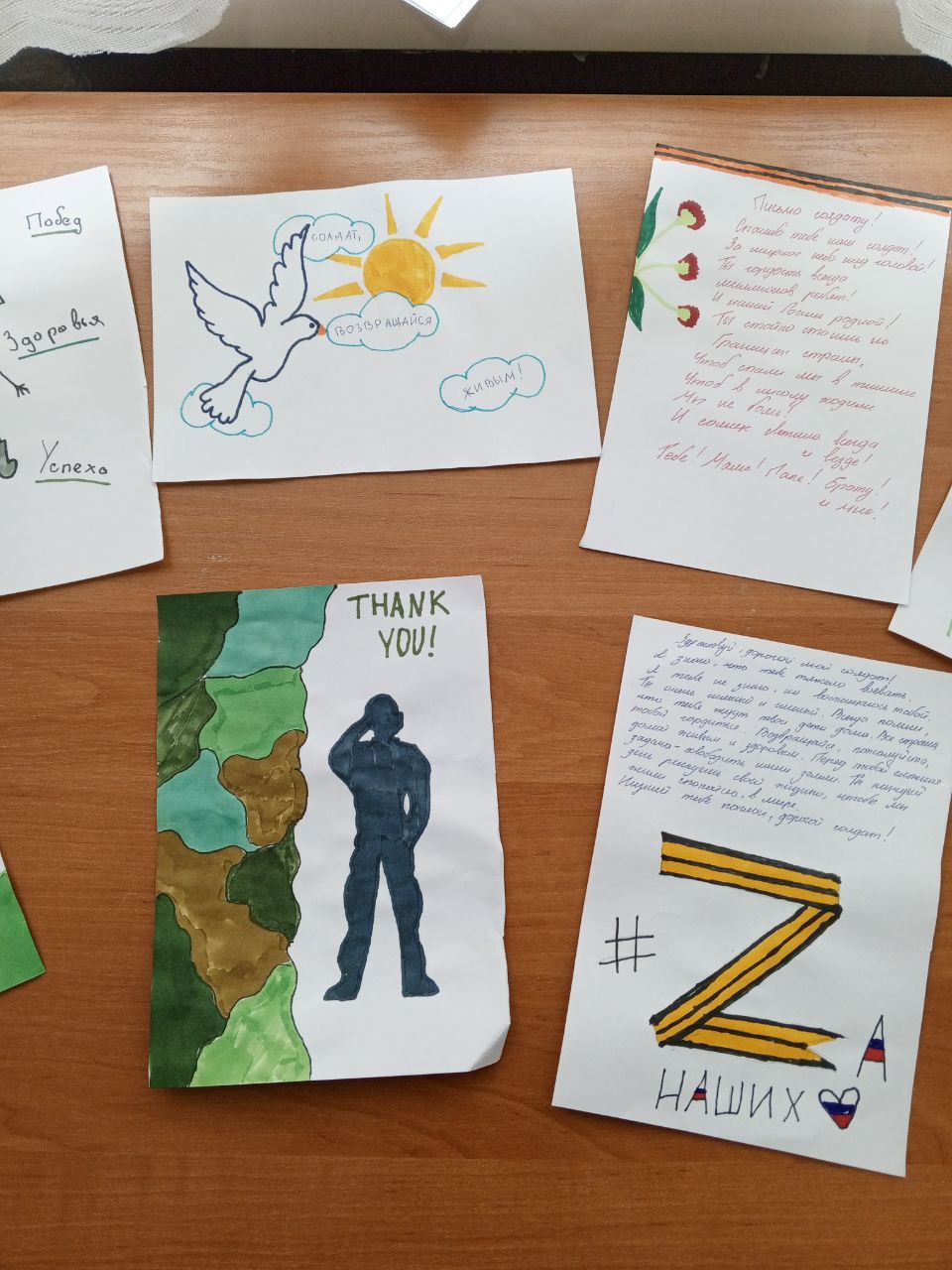 Ребята из клуба «Лучик» подготовили письма и рисунки для бойцов СВО. Каждая работа — это слова благодарности, тепло детских сердец и искренняя поддержка для тех, кто сейчас на передовой.