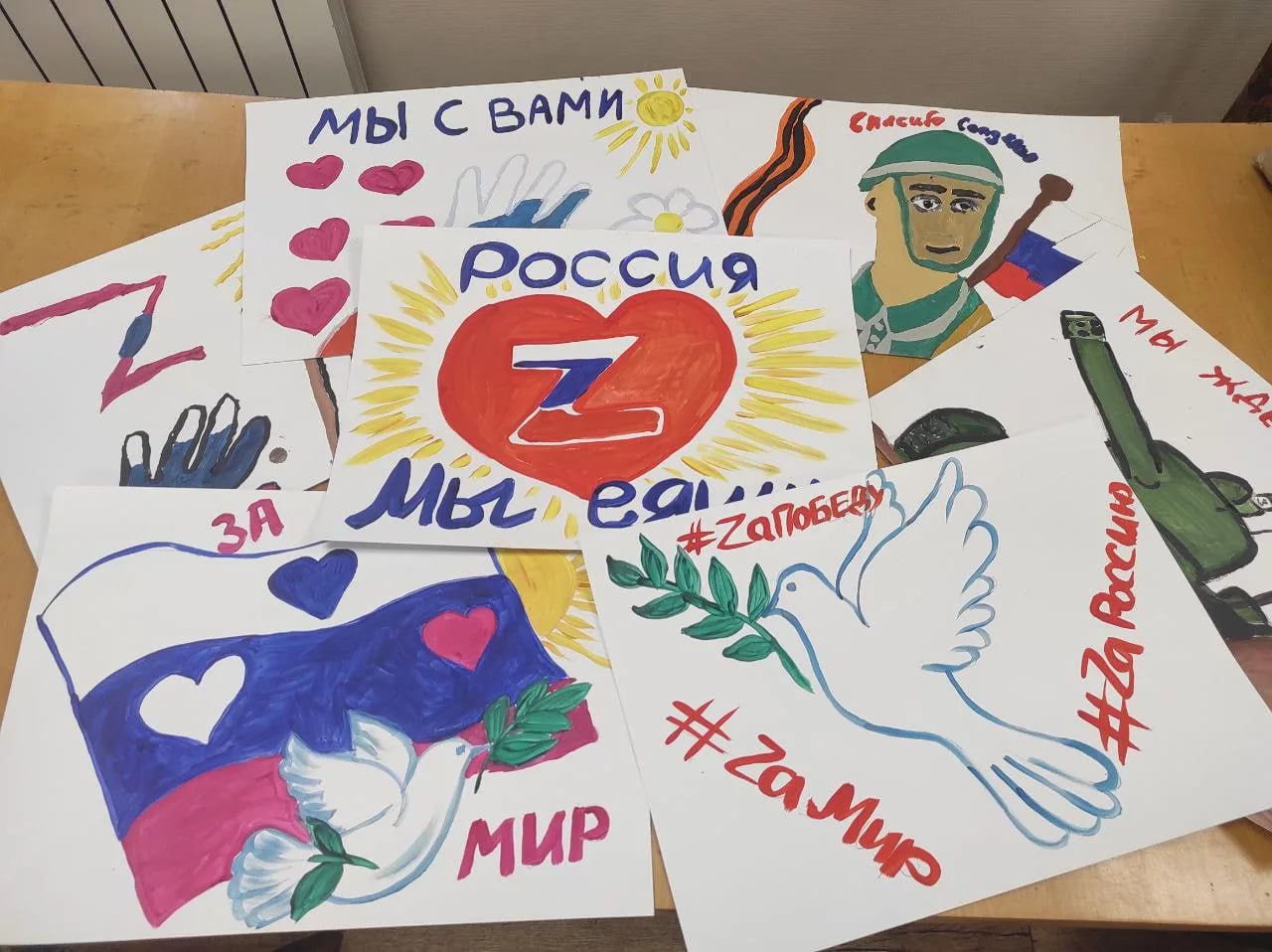Участники подготовили рисунки для солдат, находящихся в зоне проведения СВО.