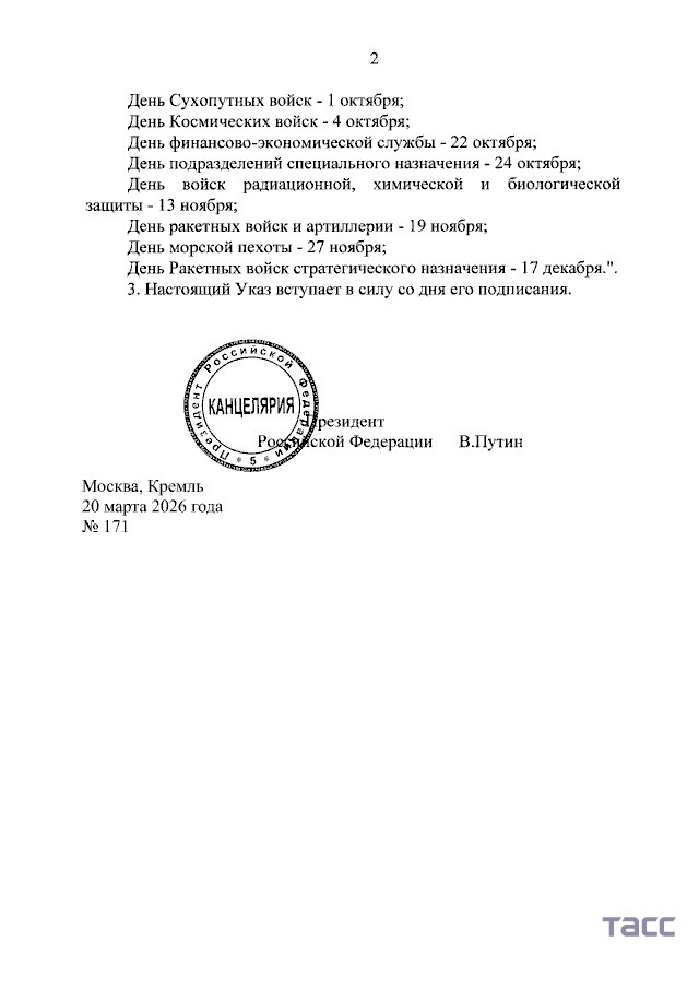 В.В.Путин установил в Вооруженных силах РФ День военно-политических органов, он будет отмечаться 15 мая
