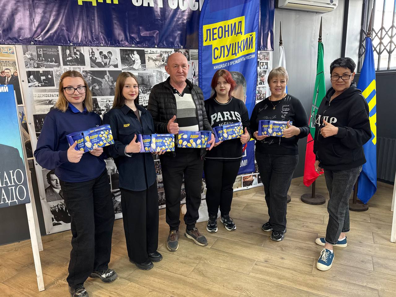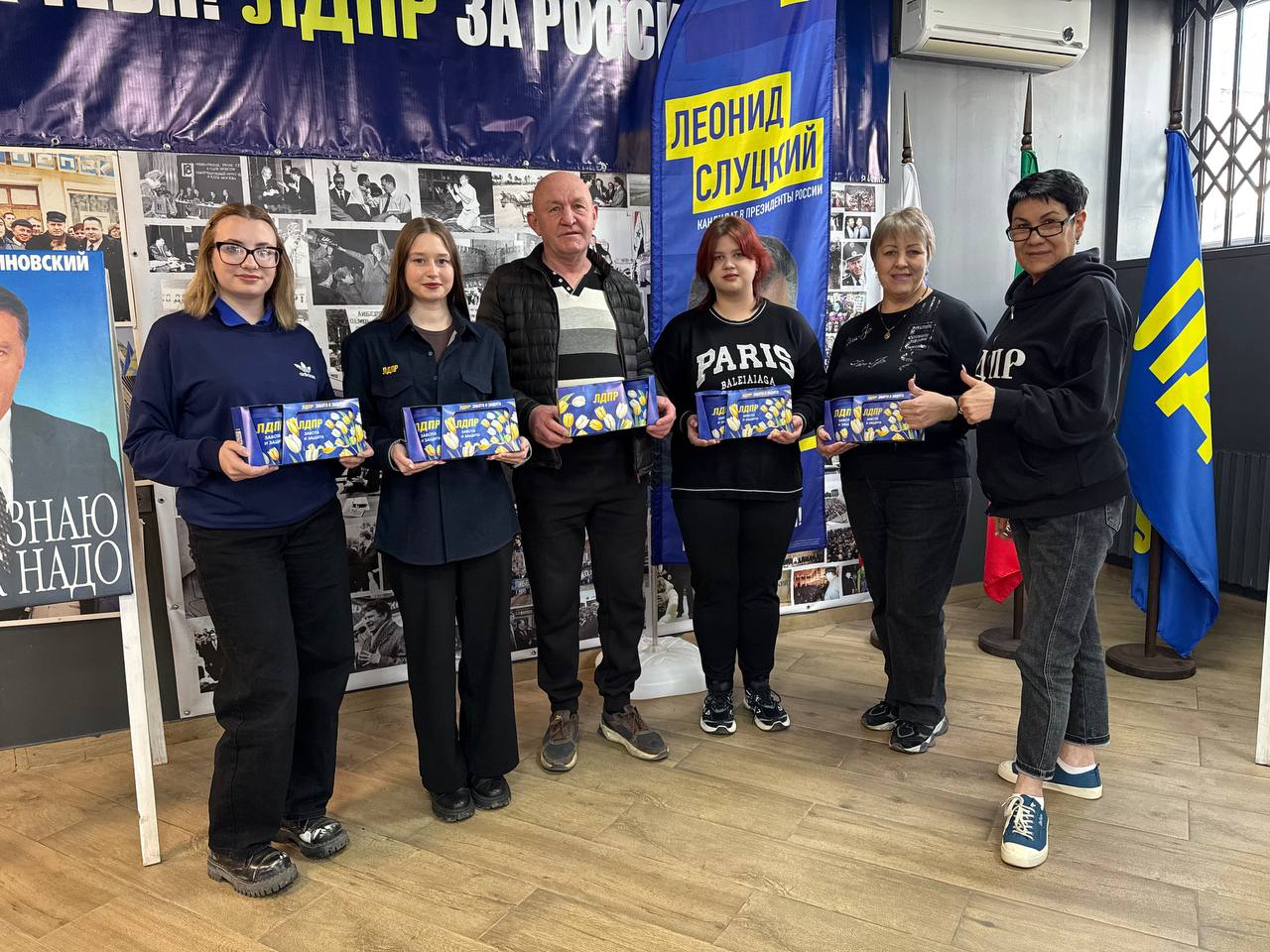 В региональном отделении ЛДПР собрались первые из счастливчиков, которых поздравила депутат законодательного собрания Запорожской области от ЛДПР Светлана Третьяк. В теплой атмосфере участники получили свои заслуженные призы — ланч-боксы в уникальном дизайне, посвященном 8 марта.