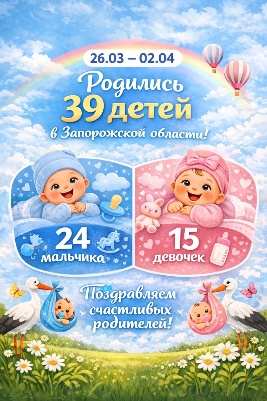С 26 марта по 2 апреля в Запорожской области родилось 39 детей.