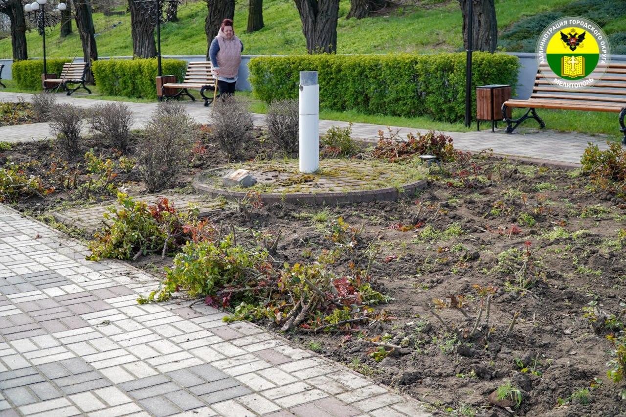 На территории у Межевого камня коммунальные службы привели в порядок дорожки, выполнили прополку и также провели обрезку роз.