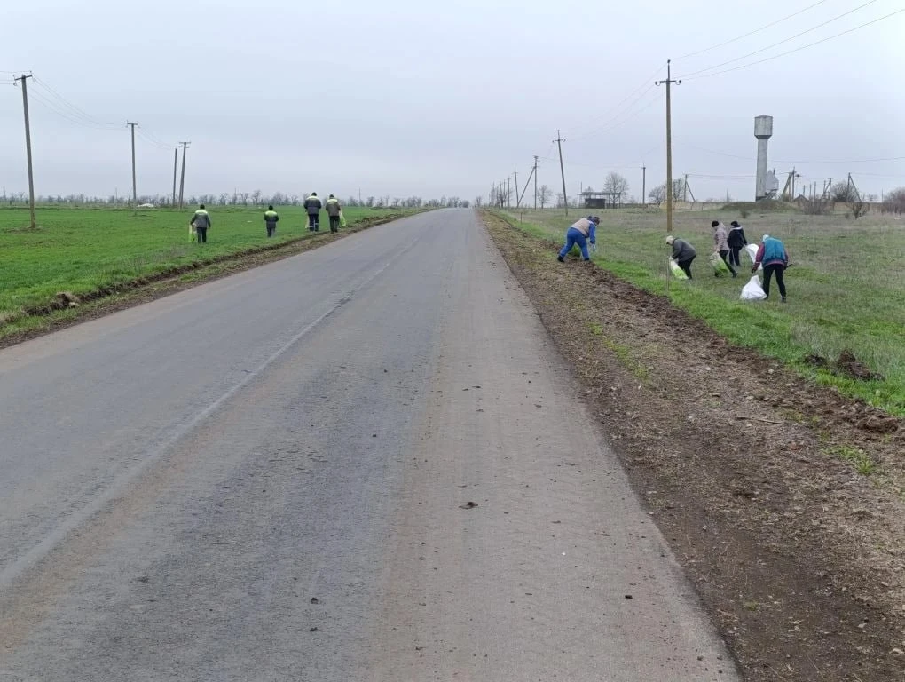 Сотрудники МБУ «Жилсервис» совместно с работниками МБУ «Центр культуры и досуга» провели плановую уборку придорожной территории на участке от трассы М-14 через село Степное до села Новгородковка.