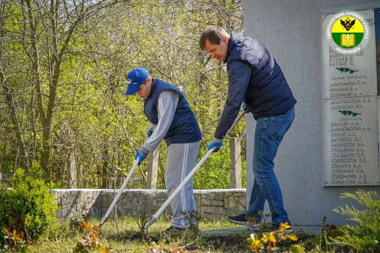 Братское кладбище по улице Пионерской — место захоронения воинов, павших при освобождении Мелитополя в годы Великой Отечественной войны. Всероссийская неделя субботников объединила жителей города, которые вышли на уборку, чтобы отдать дань памяти героям.