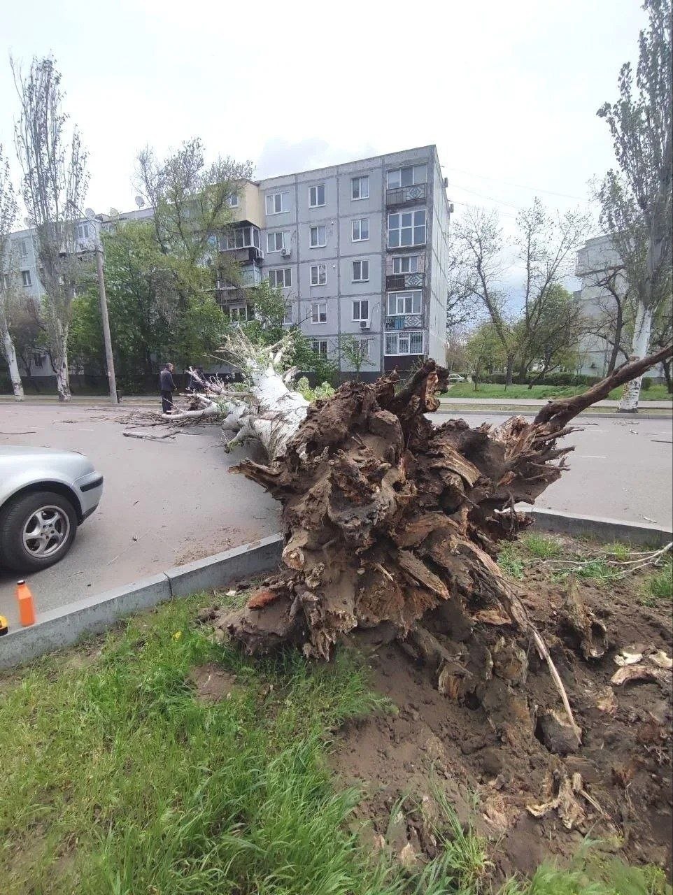 Не обошлось без жертв. В оккупированном киевским режимом городе Запорожье дерево упало на проезжающую мимо машину. Водитель погиб.