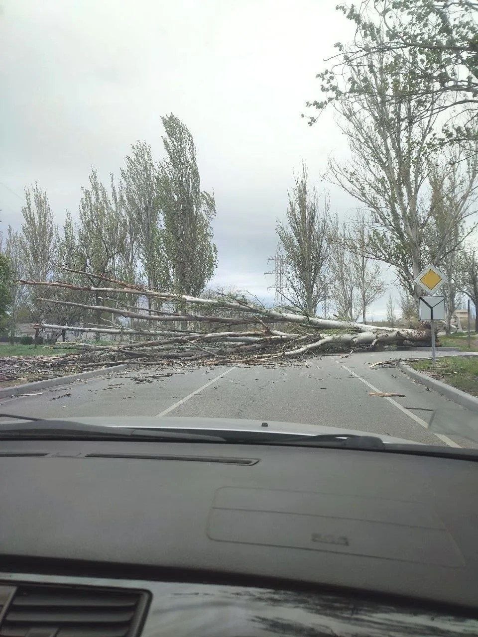 Одно сухое дерево упало в районе общежития в Мелитополе, а второе во дворах за Училищем культуры.