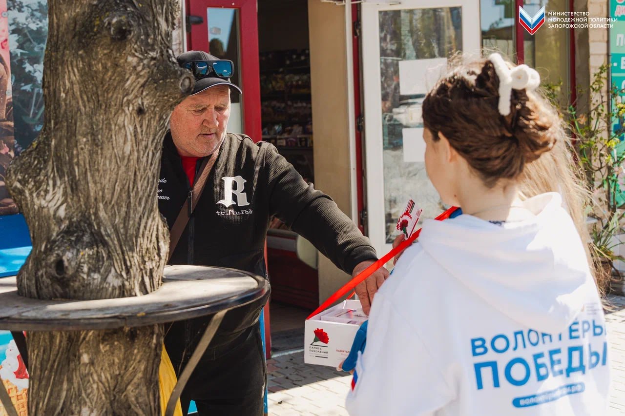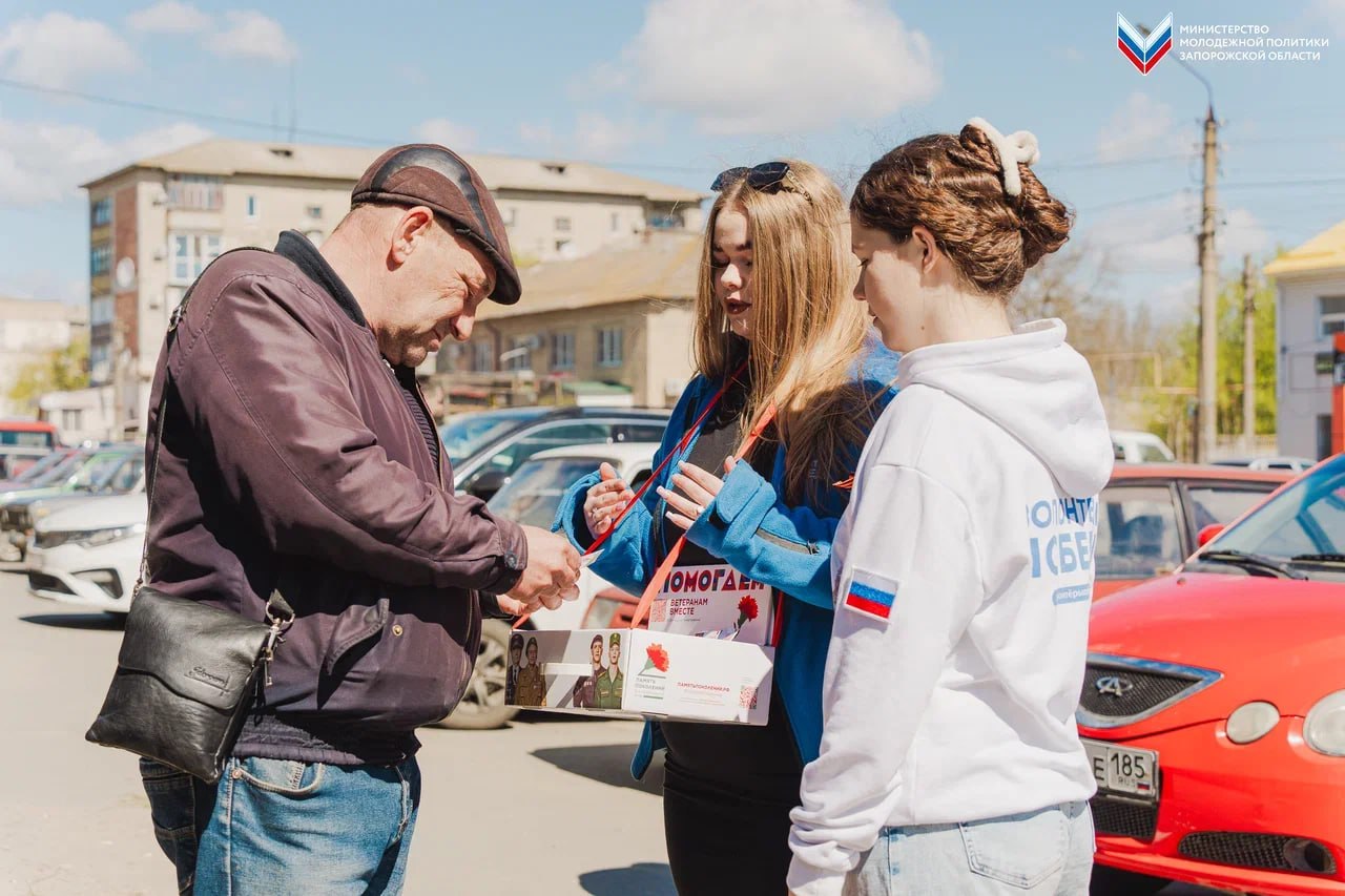 «Волонтёры Победы» раздали жителям десятки фетровых красных гвоздик — символы памяти и уважения к подвигу защитников Родины. К инициативе присоединились сотрудники администрации города Мелитополя. Собранные средства пойдут на помощь ветеранам боевых действий.